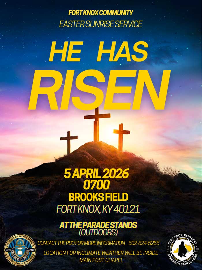 The Fort Knox Religious Support Office is offering a unique and safe way to enjoy in-person Easter worship -- a drive-in style non-denominational Easter Service.